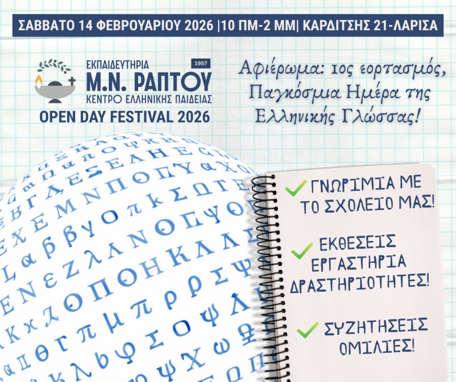 Το Open Day Festival των Εκπαιδευτηρίων Μ. Ν. Ράπτου ανοίγει τις πύλες του– Μια μεγάλη γιορτή για την Ελληνική Γλώσσα στη Λάρισα