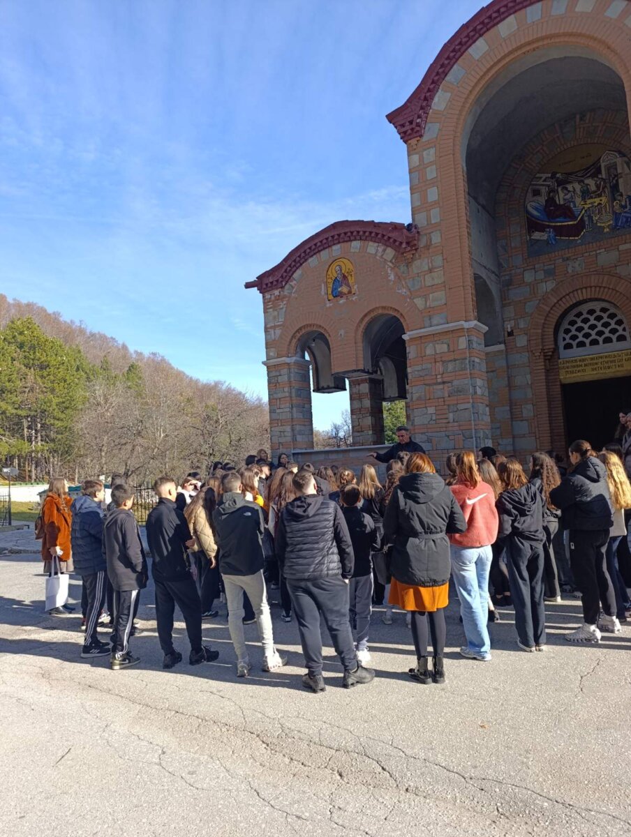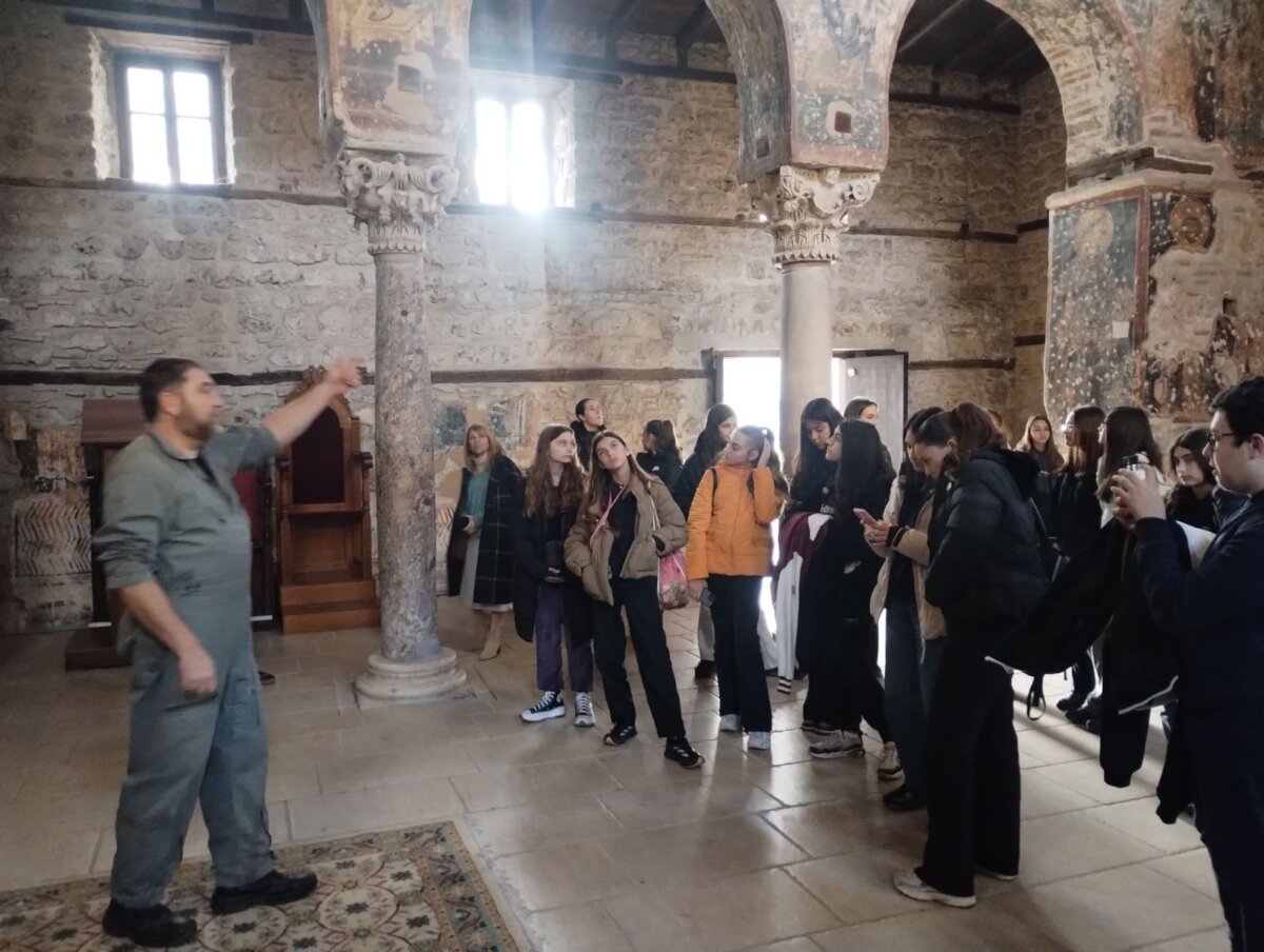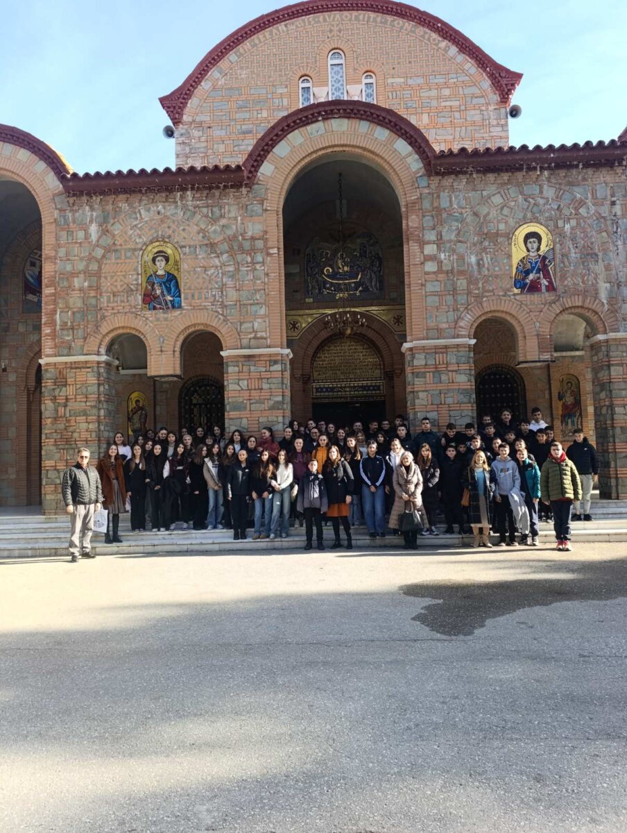 Την Παρασκευή 19 Δεκεμβρίου, οι μαθητές της Β’ Γυμνασίου και οι συνοδοί καθηγητές πραγματοποιήσαμε μια μοναδική ημερήσια εκδρομή, γεμάτη πνευματικότητα, φύση και πολιτισμό. Με ενθουσιασμό ξεκινήσαμε νωρίς το πρωί, ανυπομονώντας για τις όμορφες εμπειρίες που μας περίμεναν! Πρώτη μας στάση ήταν η Ιερά Μονή Παναγίας Σουμελά, χτισμένη στις πλαγιές του Βερμίου. Εκεί, με κατάνυξη προσκυνήσαμε την Ιερή εικόνα της Παναγίας, προστάτιδας των Ποντίων, νιώθοντας τη δύναμη της ιστορίας και της πίστης που περιβάλλει τον χώρο. Η γαλήνια και επιβλητική ατμόσφαιρα μάς γέμισε δέος και σεβασμό.