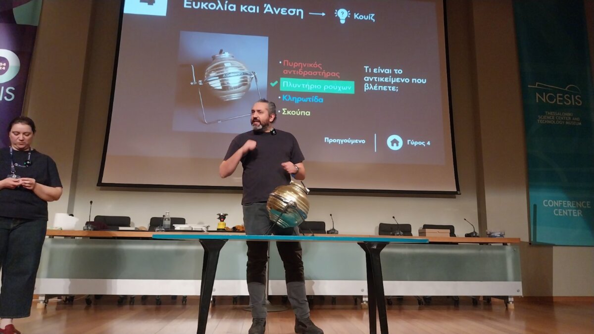 Στη συνέχεια, κατευθυνθήκαμε στο Κέντρο Διάδοσης Επιστημών, «ΝΟΗΣΙΣ». Η επίσκεψή μας στο επιστημονικό κέντρο ξεκίνησε με μια εξαιρετικά ενδιαφέρουσα συμμετοχή στο διαδραστικό παιχνίδι «Τιτανομαχίες». Μέσα από την επίλυση γρίφων που αφορούσαν στις φυσικές επιστήμες αποκομίσαμε ωραίες εμπειρίες με στιγμές γέλιου και ευγενούς άμιλλας. Έπειτα ξεναγηθήκαμε από καταρτισμένους επιστήμονες στην έκθεση «Τα εργαλεία που άλλαξαν τον κόσμο» , όπου μάθαμε πώς η ανθρώπινη εφευρετικότητα διευκόλυνε την καθημερινότητα και εξέλιξε τον πολιτισμό μας.