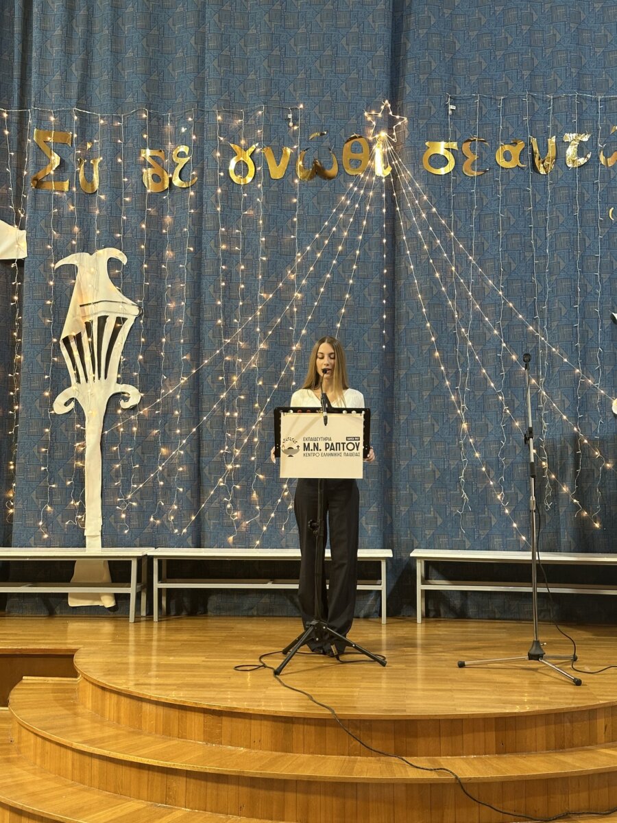 Οι μαθητές Γ. Φίλιος, Θ. Κουφοδήμος, Ευαγ. Μαργαρίτης, Φ. Φιλιπποπούλου, Γ. Ντόβας, Α. Μπέλλου, Ε. Ξηρομερίτη, Α. Σέντζα, Αν. Σούρλα, Ευαγ. Ψαρρή, Α. Γκιόκα, Ζ. Ζαχαρούλη, μέσα από στίχους σπουδαίων ποιητών μας, μας έβαλαν στο κατανυκτικό κλίμα των ημερών .